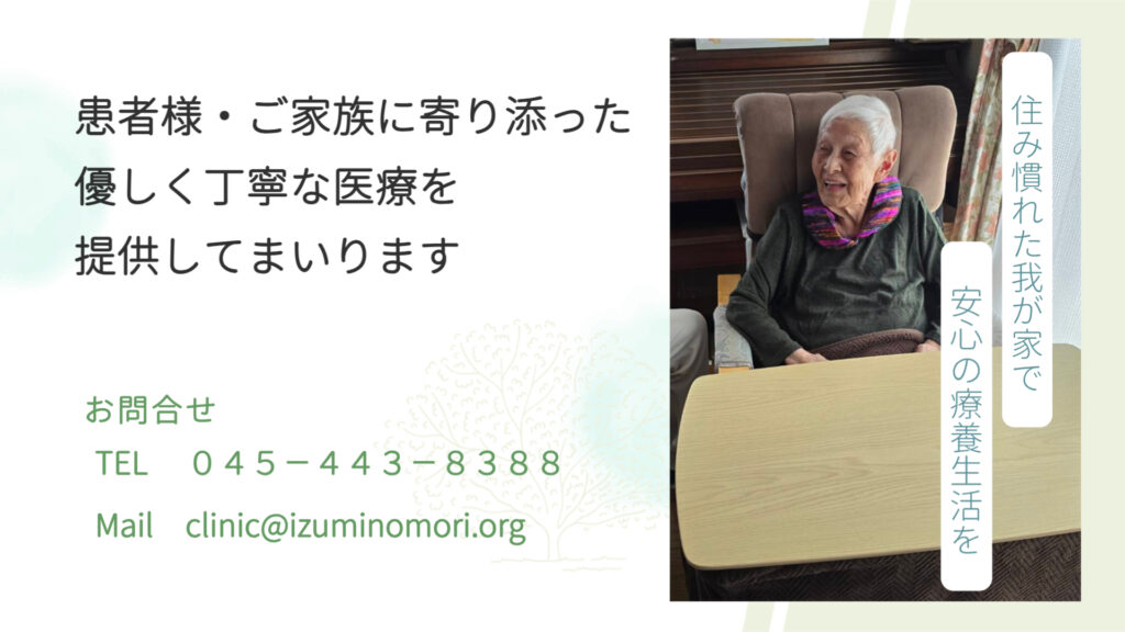 外来のように「具合が悪くなってから受診する」のではなく、継続して診療を行うことで、体調の変化に早く気づき、安心して在宅療養を続けていただくことを目的としています。